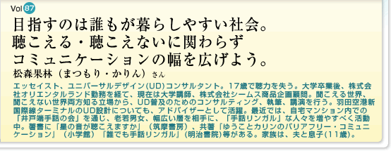 聞えることも聞こえないことも両方知っている自分だからこそできることを伝えていきたい。まだまだ社会へ働きかけていくことは山積みだ。